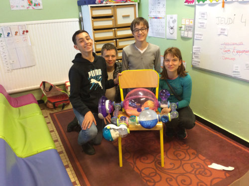 Nous avons écrit une lettre à Monsieur Debbah pour lui demander la permission et à Sonia, l’infirmière, pour connaître les allergies. Sonia nous a alors prêtés son hamster qui se nomme «Gugus». Nous avons été au Magasin Vert lui acheter de la nourriture, de la litière et nous avons trouvé une cage plus grande.